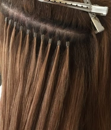Keratin bond hair extensions provide a natural, seamless look with long-lasting results. Pre-bonded keratin strands are individually attached to your hair, making for a comfortable, versatile and discreet final result.